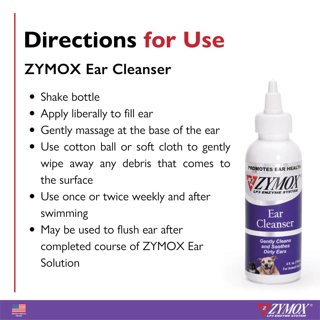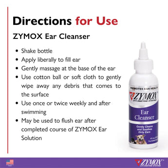 • Zymox Ear Cleanser (4 oz) โ€“ Helps remove dirt, debris, and buildup